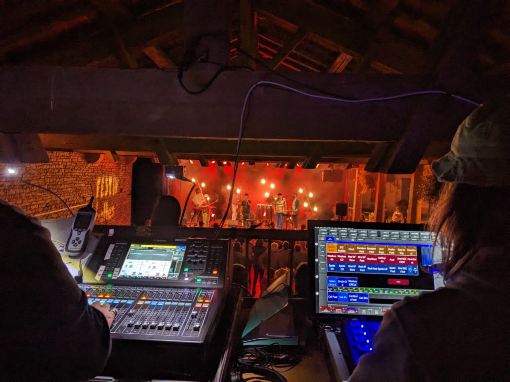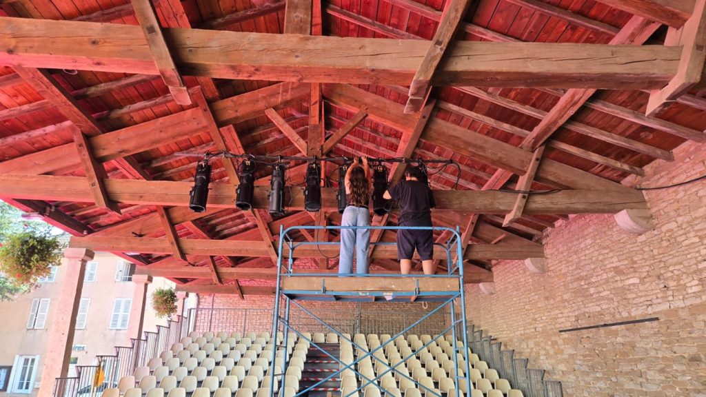 Depuis deux années consécutives, j’ai eu la chance de participer, au mois d’août, au Festiv’halles d’Azé. Ce festival me tient particulièrement à cœur, car il est pour moi un lieu d’apprentissage où je me forme chaque année un peu plus à la technique, en assistant l’électro lumière (installation, réglages et suivi des projecteurs) ainsi que le régisseur lumière.