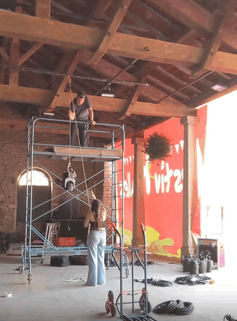 J’ai pu prendre part au montage et au démontage technique, et j’apprends progressivement à lire un plan feu, à connaître le matériel, à réparer des câbles, à effectuer les réglages lumière et à réaliser différents branchements. J’ai pu, durant la seconde édition, réaliser de petits vlogs de nos journées de montage au Festiv’halles, vidéos disponibles sur ma page Instagram.